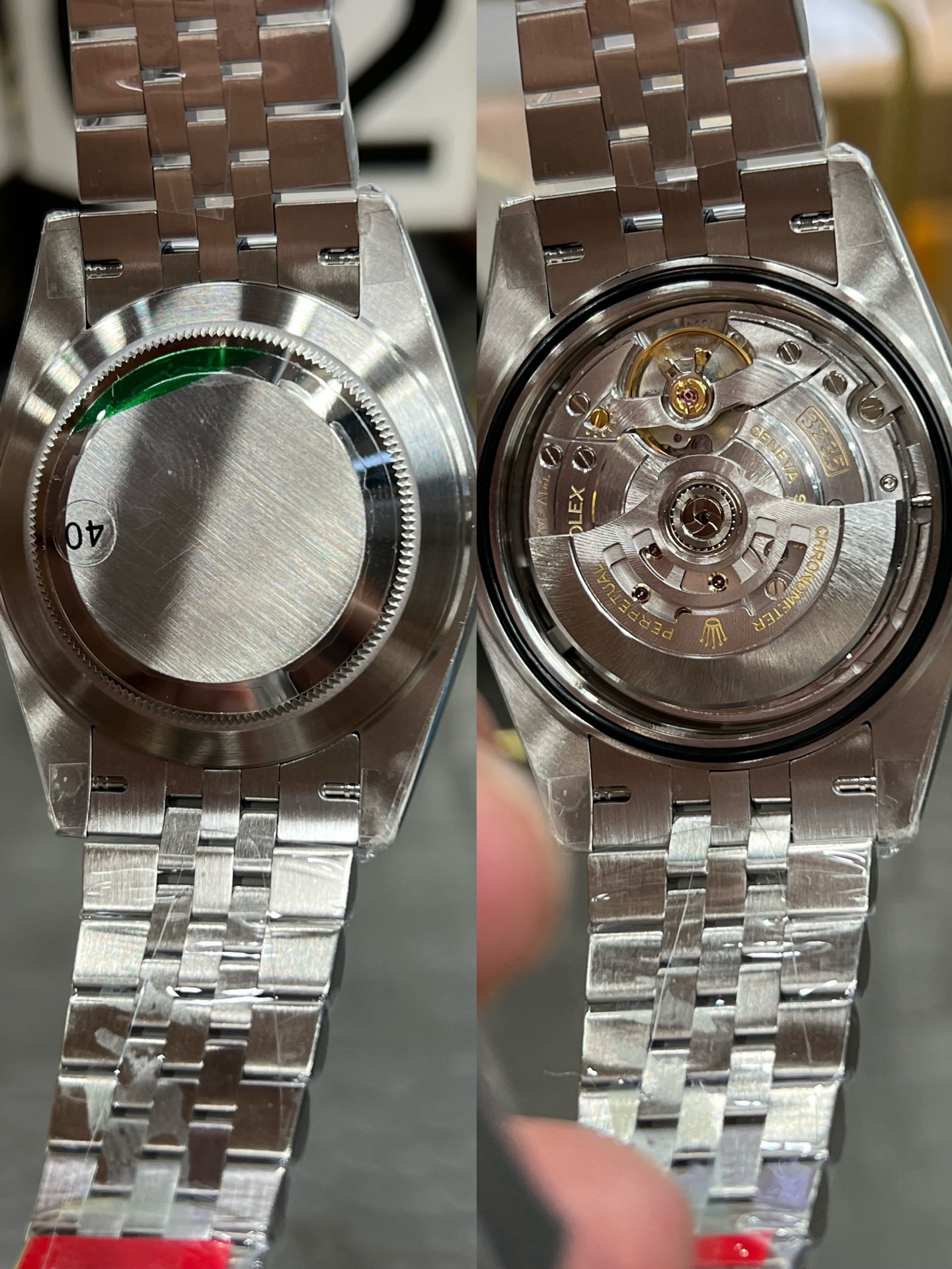 | Case Material | 1:1 high quality 904L stainless steel, screw-in back and crown, deep and double line engraved rehaut, brighter and more accurate engravings, random serial number engraved at 6:00 of the rehaut. Different random serials |