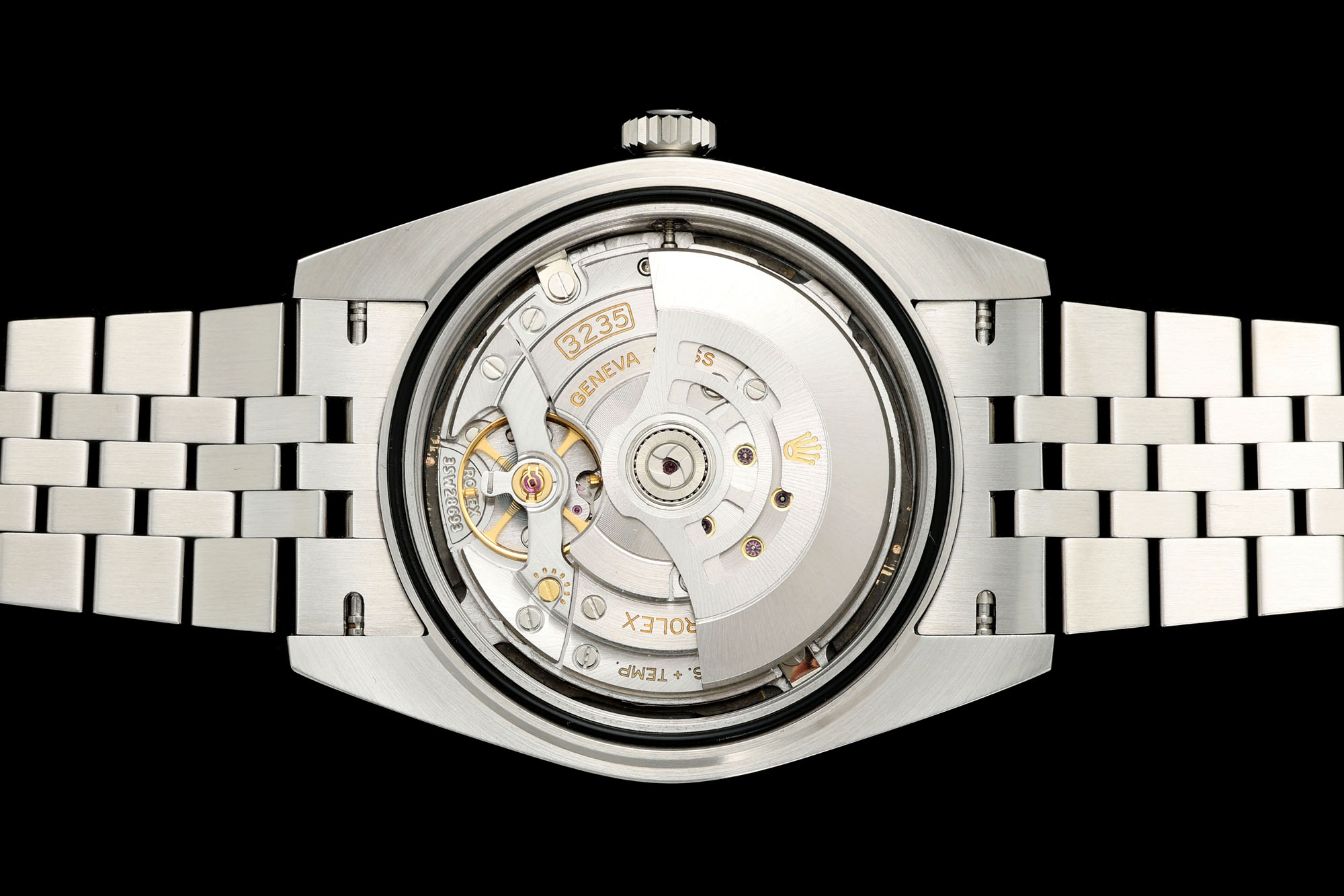 Movement Asian JingHe Super Clone 3235 Automatic Movement at 28800 vph, free sprung, the same as genuine