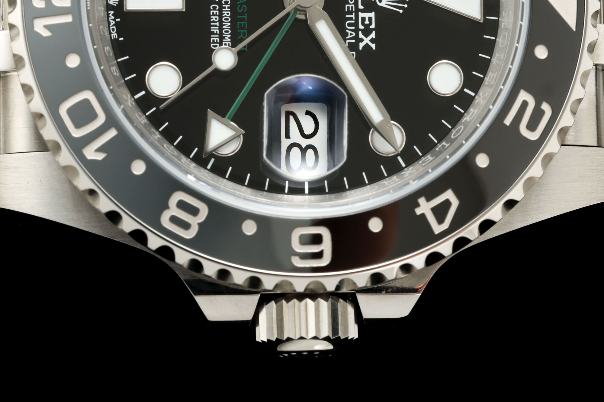 | Movement | Asian JingHe Super Clone 3285 Automatic GMT movement with decorated bridges & rotor with correct hand stack, Free Sprung same as geunine. |