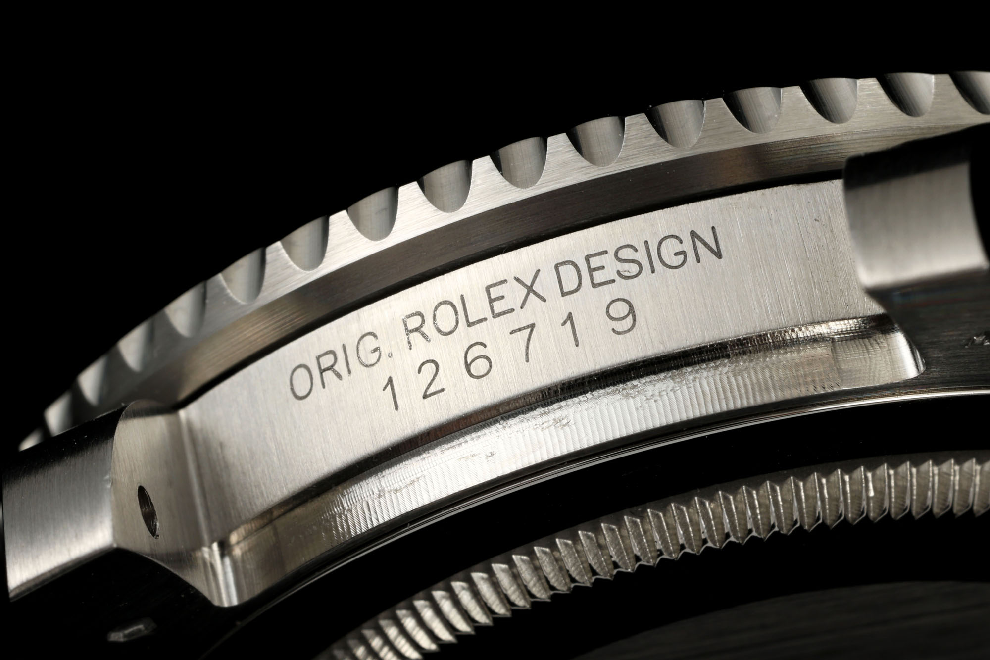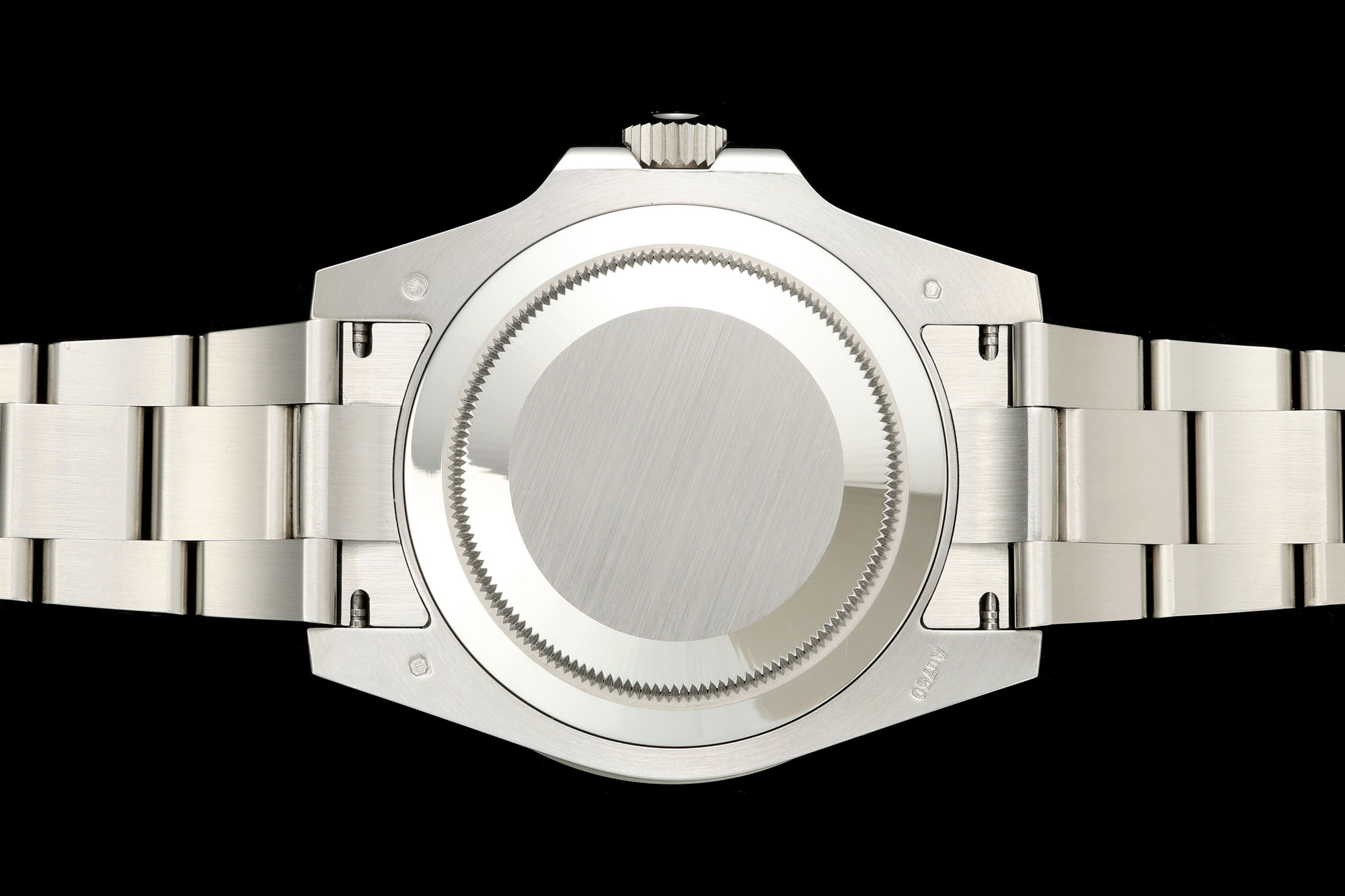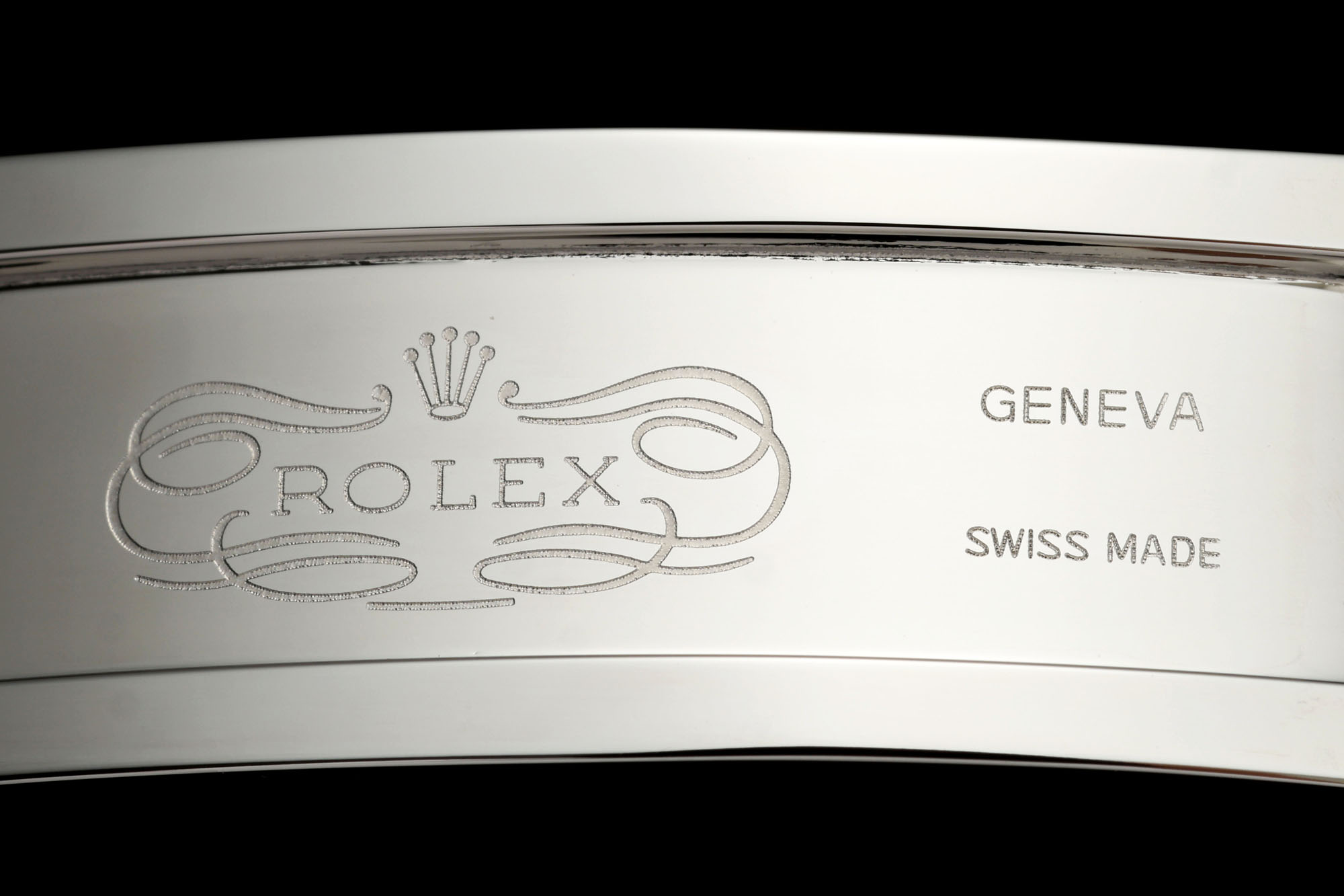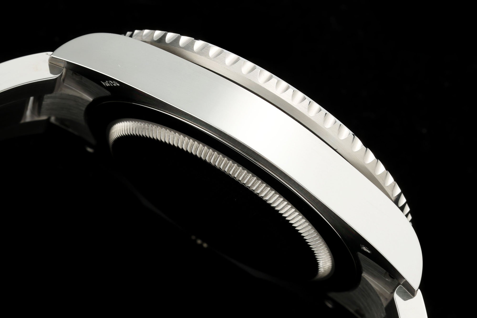 Crystal Scratch-proof sapphire crystal with semi-invisible crown etched at 6:00 position of the crystal